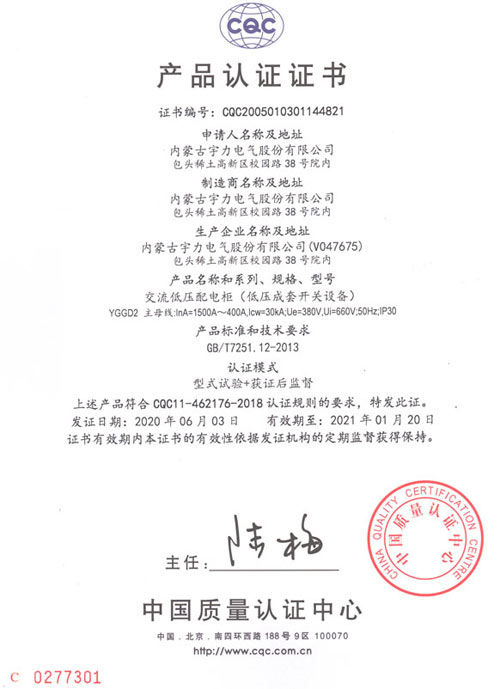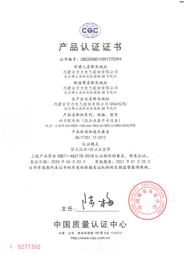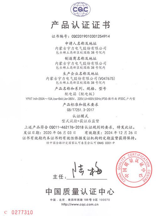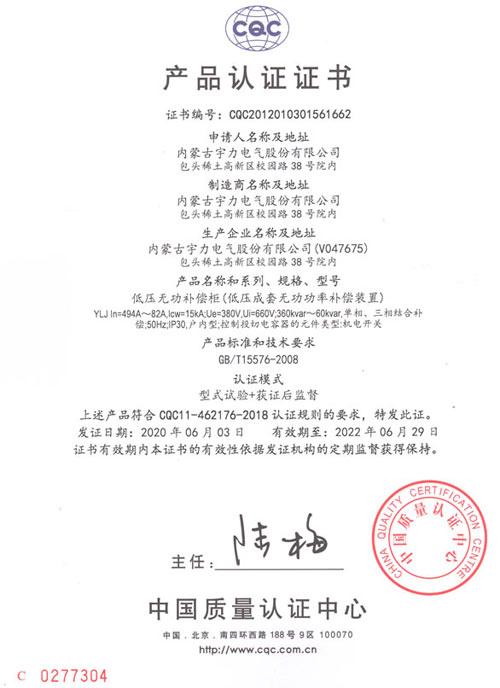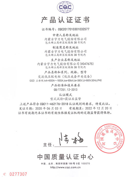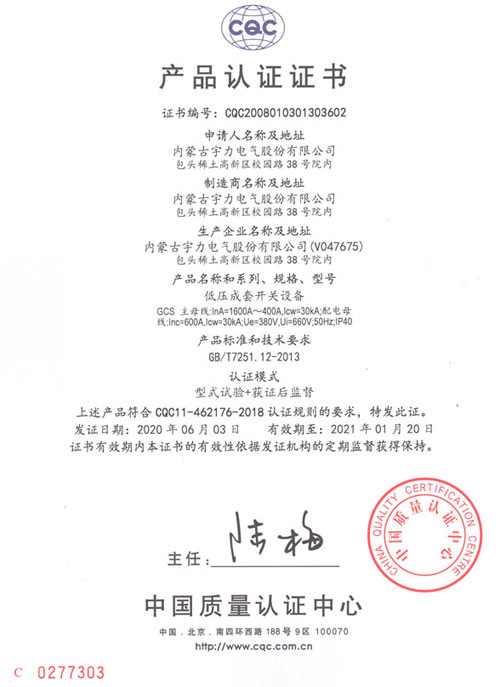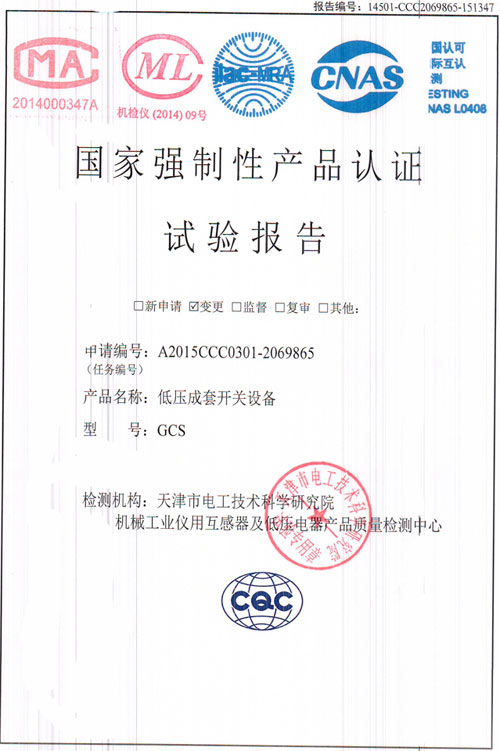 GCS低壓成套開關(guān)設(shè)備(CQC認證)