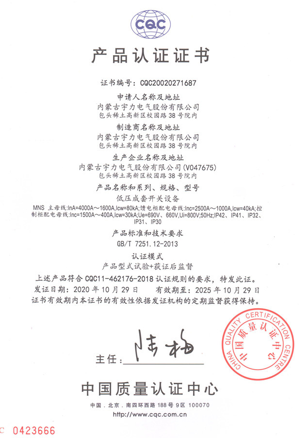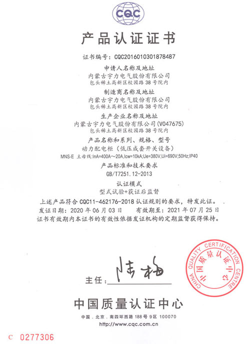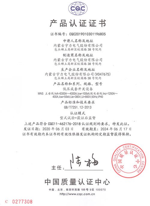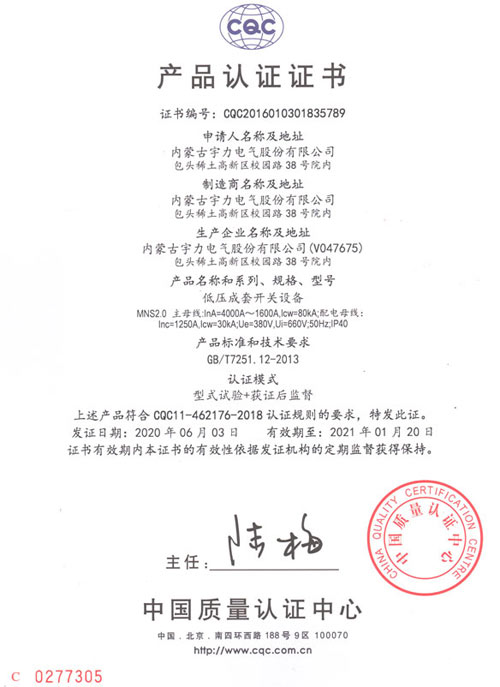 MNS2.0低壓成套開關(guān)設(shè)備(CQC認證)