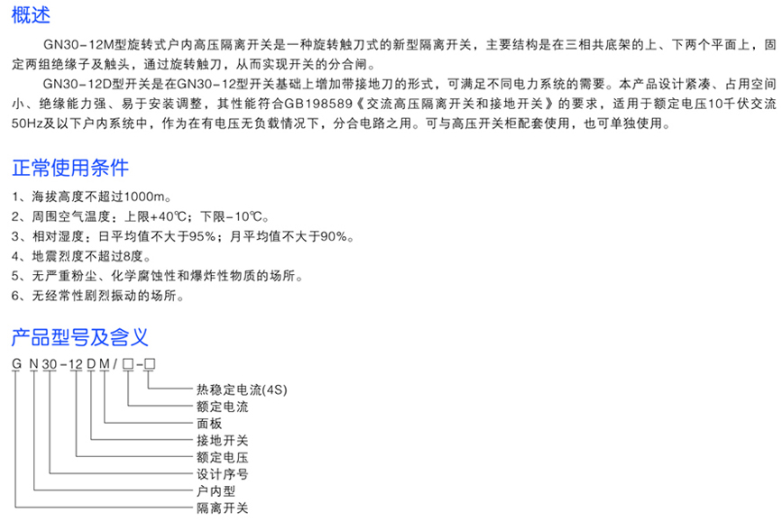 GN30-12M系列戶內(nèi)旋轉(zhuǎn)式高壓隔離開關(guān)