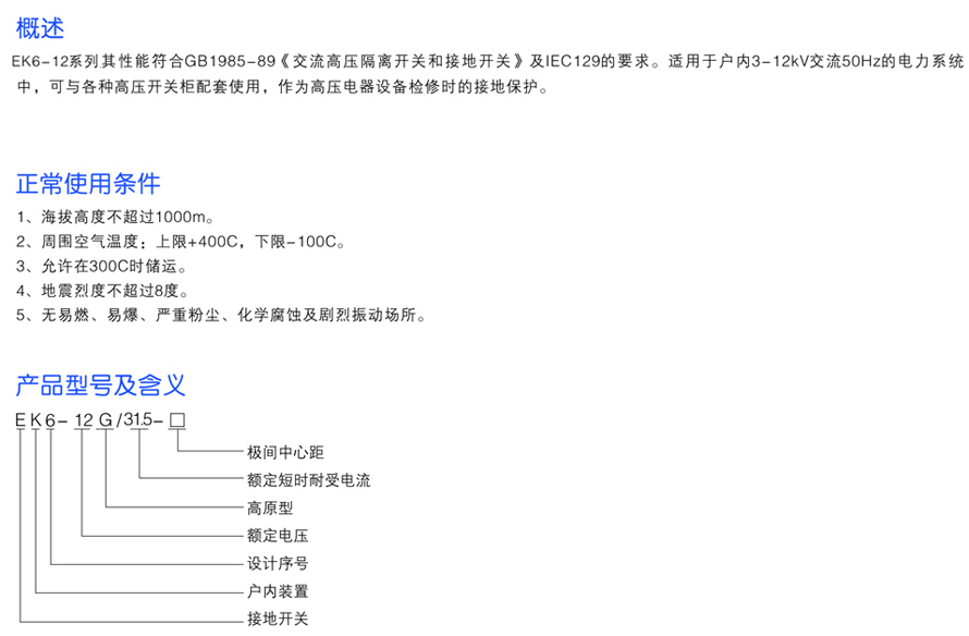 EK6-12/31.5戶內(nèi)高壓接地開關