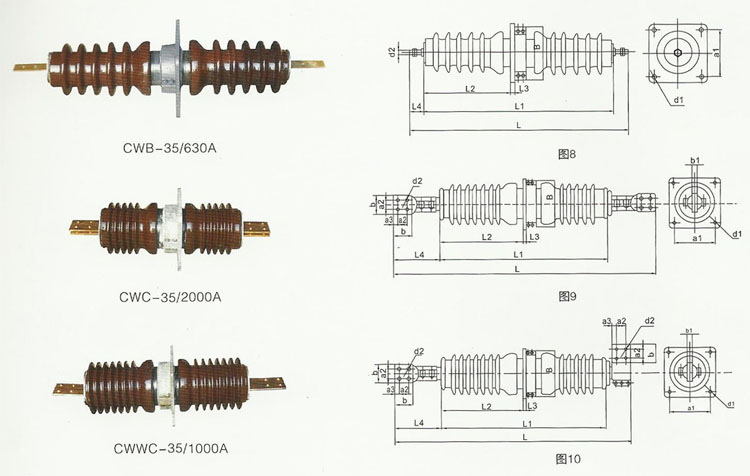 當(dāng)銅導(dǎo)體與母線直接相連時(shí),易產(chǎn)生電化腐蝕,接觸面溫升過(guò)高二導(dǎo)致接頭燒壞,影響設(shè)備壽命,故應(yīng)采用銅鋁過(guò)渡接頭,但又給現(xiàn)場(chǎng)施工帶來(lái)麻煩,采用鋁導(dǎo)體瓷套管則可解決上述問(wèn)題。