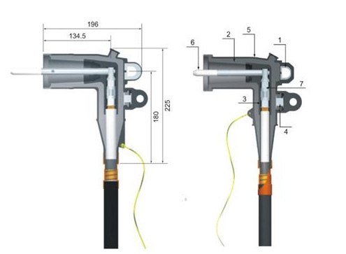 肘型電纜接頭(簡稱肘型頭)廣泛應用于美式箱變,環(huán)剛柜、電纜分支箱、地埋式變壓器及其它設備的連接,為全絕緣、仝密封的插入式終端頭.其額定電流200A。其導電桿連接又具有滅弧功能.與帶有滅弧裝置的200A套管連接,可作為負荷開關操作200A電流。操作極為方便.但不能切斷短路電流。適用截面35-185mm。