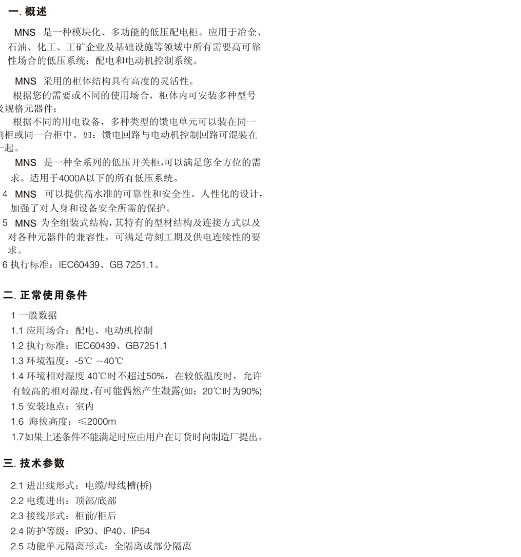 MNS低壓抽出式開關(guān)成套開關(guān)設(shè)備