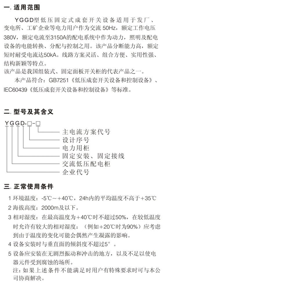 YGGD型低壓固定式成套開(kāi)關(guān)設(shè)備
