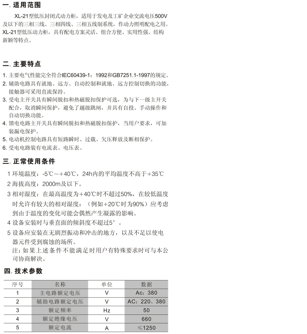 XL-21低壓封閉式動力配電柜