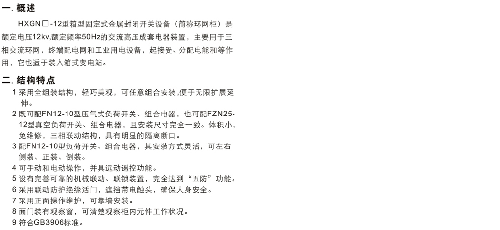 HXGN口-12箱型固定式金屬封閉開關設備
